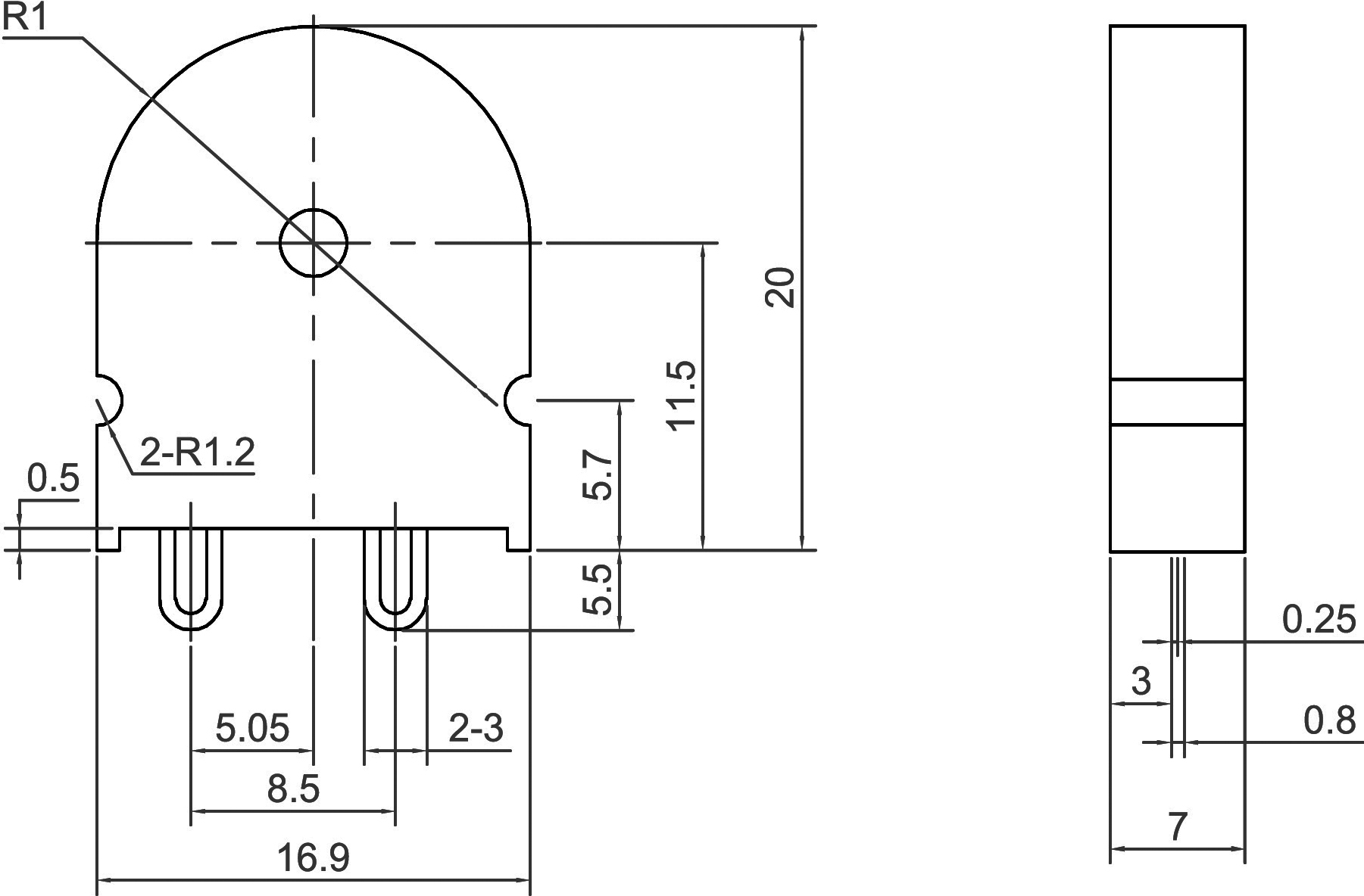 | Part No. | Diameter Φ (mm) | Height (mm) | Max. Input Voltage (V) | Rated Voltage (VAC) | Min Sound Output (dBA) | Resonant Frequency (Hz) | Capacitance @ 1KHz (pF) | Operating Tempature (°C) | Housing | Weight (g) |