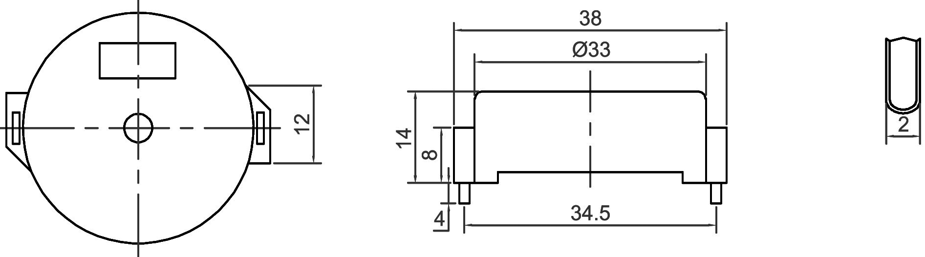| Part No. | Diameter Φ (mm) | Height (mm) | Max. Input Voltage (V) | Rated Voltage (VAC) | Min Sound Output (dBA) | Resonant Frequency (Hz) | Capacitance @ 1KHz (pF) | Operating Tempature (°C) | Housing | Weight (g) |