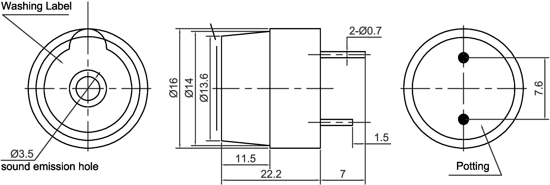| CMT1622A2048NP | 16 | 22.2 | 1 ~ 3 | 1.5 | 18 | 27 ± 3 | 80 @ 10cm | 2048 | -20 ~ +70 | Pin | Noryl | 5 |